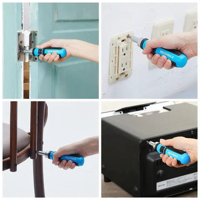 Ratcheting bit driver, sockets and wide range sizes of screwdriver bits for home, door, furniture, appliances, kitchen and garage projects