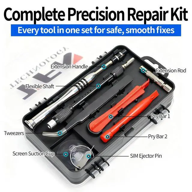 Upgrade Repair Accessories IncludedComes with 15 essential electronics repair tools: flexible extension hose, magnetic bit holder, electric screwdriver adapter, suction cup, spudger set, tweezers, brush, SIM tool, and more, giving you everything needed for phone repair, laptop repair, and delicate device disassembly