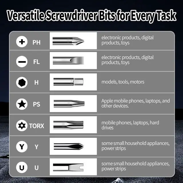 Wide Electronics CompatibilityDesigned for a wide range of electronics repair taskssmartphones, tablets, laptops, PC maintenance, game consoles, drones, RC toys, watches, glasses, and small household electronics. A must-have Precision Screwdriver Set for any DIY or professional repair job