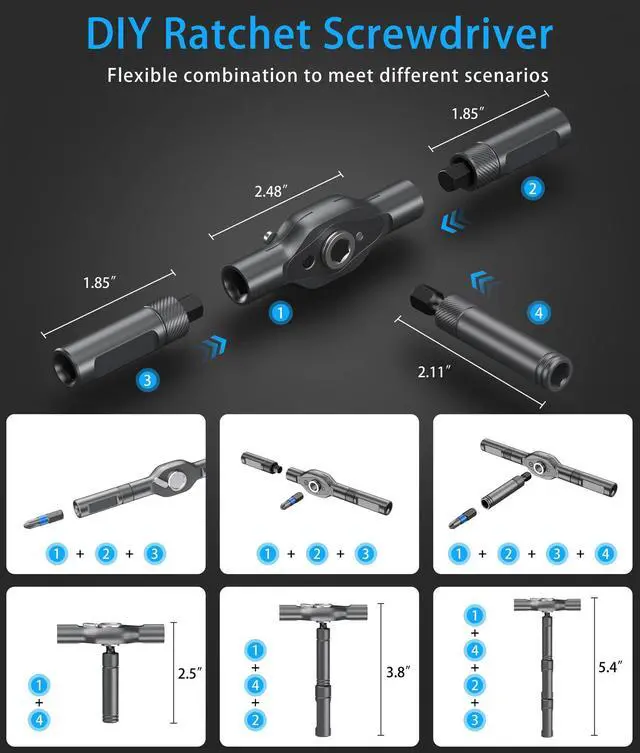 Smooth Ratcheting Mechanism: Equipped with a 58-tooth ratchet and 6.2° swing arc, this screwdriver delivers up to 80% effort savings and 50 N·m torque. Easily tighten or loosen screws without constant wrist adjustments for efficient home or professional use