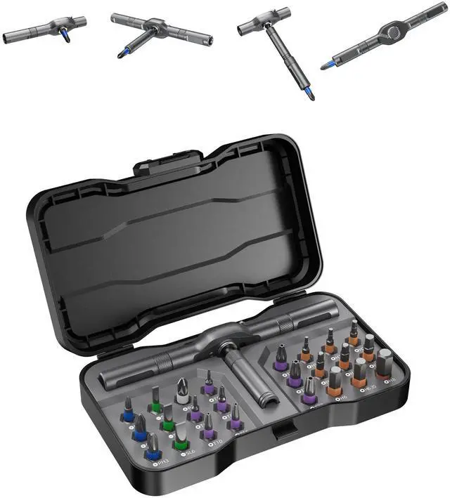 24 Essential S2 Steel Bits: Includes 24 premium magnetic bits in common types such as Phillips, Slotted, Torx, Hex, and Pozidriv. Each bit is made of durable S2 alloy steel, ensuring hardness, wear resistance, and precise fit for various DIY, furniture, and electronics repairs