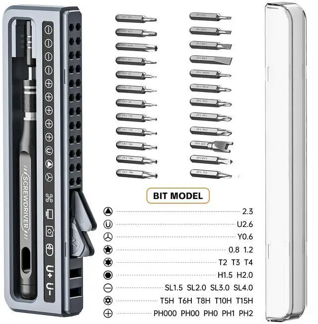 ANVANNA Advanced Precision Screwdriver Kit32 pieces of small precision kit. Our experienced technical team has redesigned the kit, which includes all the tools needed to repair electronics, including Phillips, Pentalobe, Torx, Hex, JS, Slotted, Triangle, Square, etc. It can repair Macbooks, computers, laptops, etc iPhonePS4 PS5Mini repair tool set, suitable for switches, glasses, watches, doorbells, electronic products, etc.