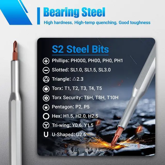 Our Multifunction Precision Screwdriver Bits include a comprehensive range of types and sizes: Phillips, Slotted, Torx, Security Torx, and more. Made from high-quality S2 steel, these bits are built to last. Whether you're working on smartphones, laptops, or gaming consoles, we have the right bit for the job. For the most versatile screwdriver bit set!