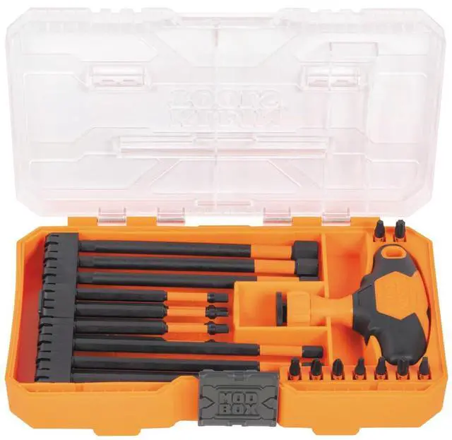 - Impact Bit Set includes (2) #2 Phillips, #2 Square, (2) Combination bits, (4) TORX Bits, (12) Hex bits, impact bit holder plus a ratcheting T-Handle housed in a MODbox case