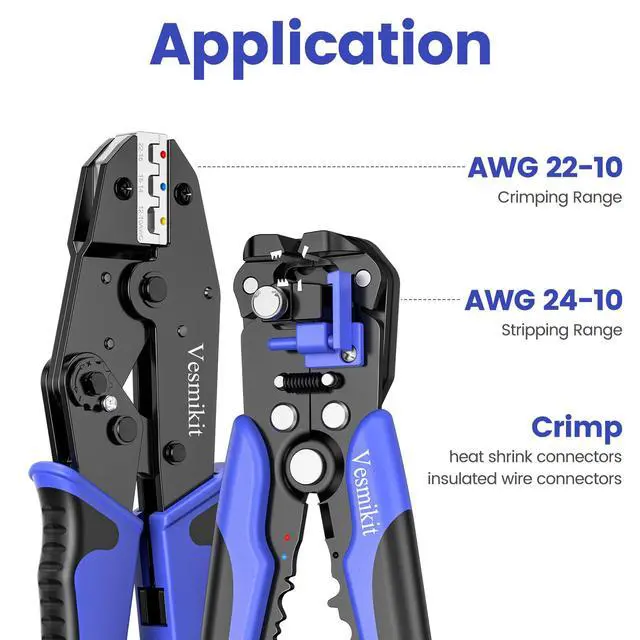 Vesmikit Professional Crimping Tool AWG 22-10 and Wire Stripper AWG 24-10