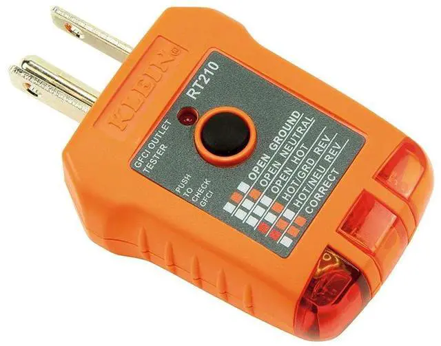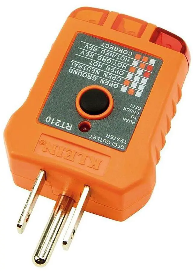 Klein Tools Receptacle Testers are designed to detect the most common wiring problems in standard and GFCI receptacles. A convenient chart on the tester helps determine wiring condition in outlet, based on lights results. Conditions indicated: open ground, reverse polarity, open hot, open neutral, hot/ground reversed.