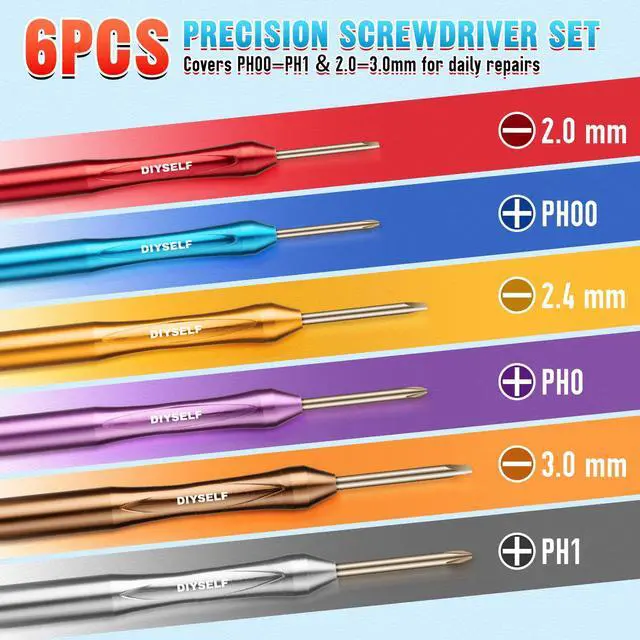 Multiple Sizes Included: This magnetic screwdriver set comes with six different tips: PH00, PH0, PH1, 2.0mm, 2.4mm, and 3.0mm. Whether you need a mini screwdriver set for small devices or a precision screwdriver set for eyeglasses and electronics, the range of sizes ensures compatibility with everyday repairs.