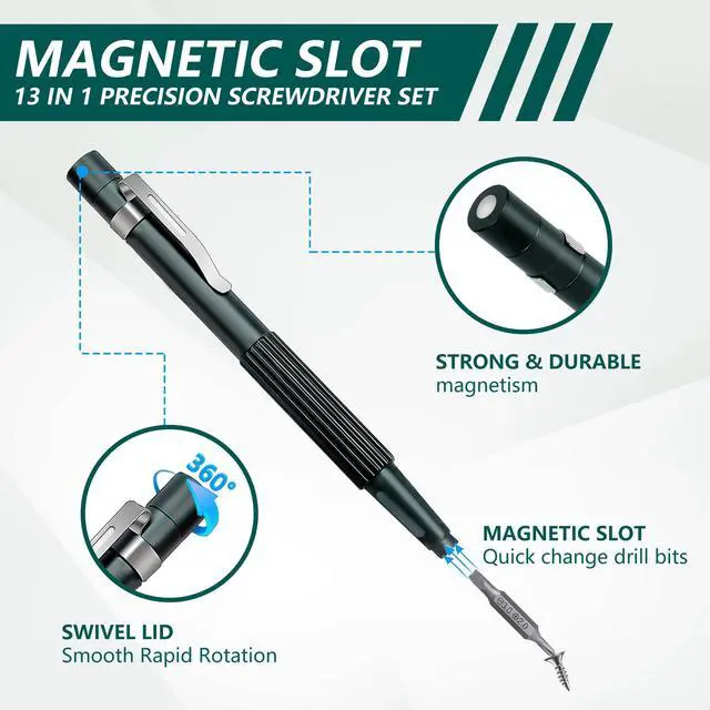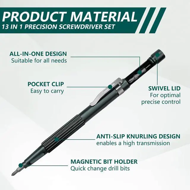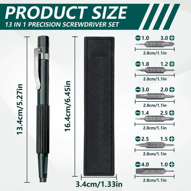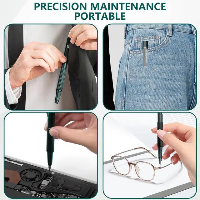Compact & Portable Design All bits store neatly inside the slim, pen-style handle with a pocket clip for easy carryingideal for on-the-go repairs.