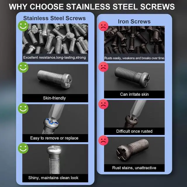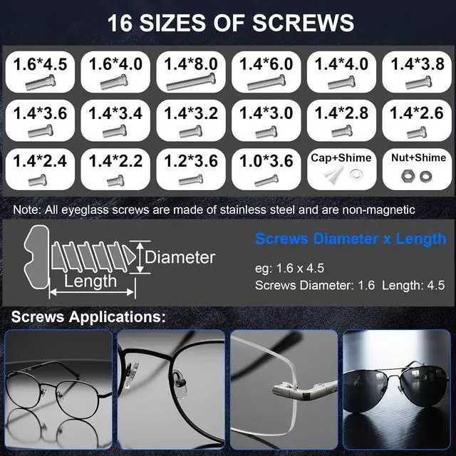 Why Choose Stainless Steel Screws: Say goodbye to rust! Crafted from premium, non-magnetic stainless steel, our eyeglass screws offer exceptional rust resistance against sweat and moisture. They ensure long-lasting durability, prevent seizing or breakage, and maintain a clean appearance without staining frames or skin. Perfect for easy future adjustments and reliable, hassle-free maintenance