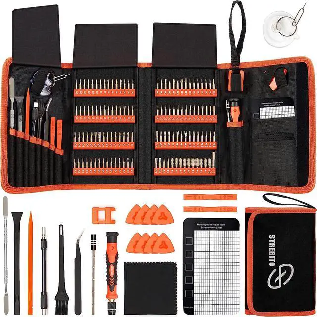 Wide ApplicationSTREBITO precision screwdriver set has 120 bits, complete with every driver bit you'll need to tackle any fix or DIY project. In addition, this precision tool kit comes with 22 accessories, such as magnetizer, magnetic mat, suction cup, spudger, cleaning brush, tweezers, etc. Whether you're a professional technician or a amateur, this computer toolkit has what you need to repair all PC, cell phone, Macbook, PS4, Xbox, game controller, tablets, glasses, watch, etc