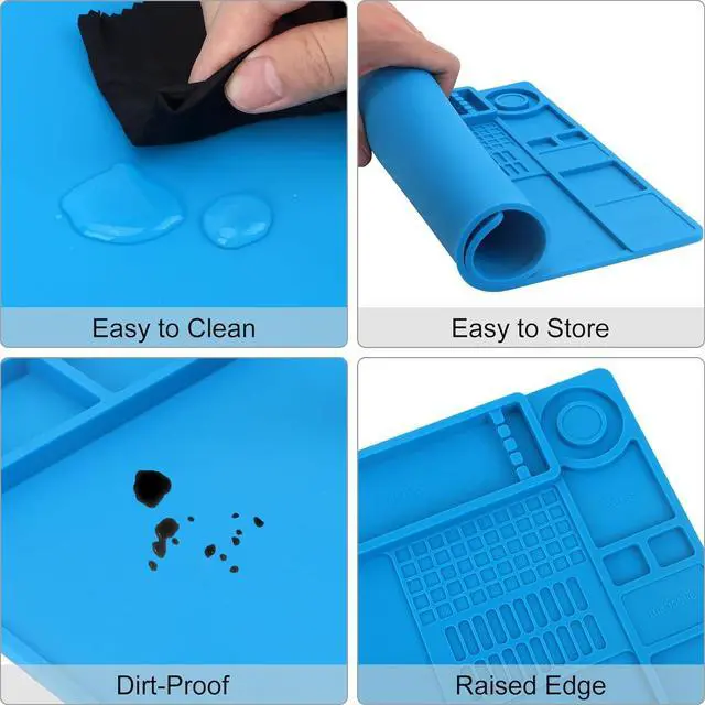 Heat-Resistant Silicone: Made from premium, soft silicone that endures temperatures up to 932°F. This magnetic project mat provides a non-scratch surface to protect your electronics and shields your workbench from heat damage caused by heat guns or soldering irons. The high elasticity of soldering pad ensures it won't easily deform, making it easy to store by folding or rolling