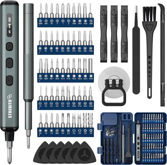 Compact Storage & Lifetime WarrantyThis electric mini screwdriver set comes with a dual-sided storage box with organized compartments, and a soft-gel labeled bit base for quick access, keeping all tools and bits neatly stored and portable. This cordless screwdriver is covered by STREBITO's lifetime warranty. If you encounter any issues with your small powered screwdriver, simply contact customer service for help