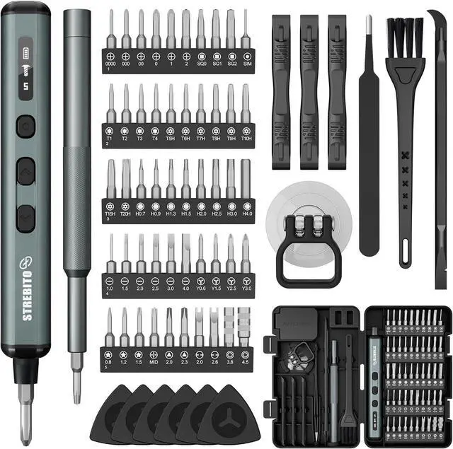 Compact Storage & Lifetime WarrantyThis electric screwdriver set comes with a dual-sided storage box with organized compartments, and a soft-gel labeled bit base for quick access, keeping all tools and bits neatly stored and portable. This electric screw driver is covered by STREBITO's lifetime warranty. If you encounter any issues with your small powered screwdriver, simply contact customer service for help
