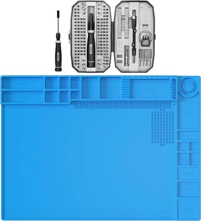 Wide Application: At 21.65 x 15.75 inches, this solder mat provides large space for soldering and repairing various electronics, such as computer, Macbook, and PCB board. It's also a practical gift for DIY enthusiasts, technicians, and professionals. The repair mat features 3 magnetic zones for metal components and screws, and non-magnetic zones to protect precision parts from magnetic interference