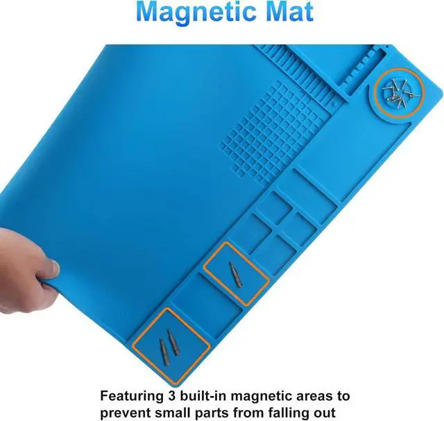 Heat-Resistant Silicone: Made from premium, soft silicone that endures temperatures up to 932°F. This magnetic project mat provides a non-scratch surface to protect your electronics and shields your workbench from heat damage caused by heat guns or soldering irons. The high elasticity of soldering pad ensures it won't easily deform, making it easy to store by folding or rolling