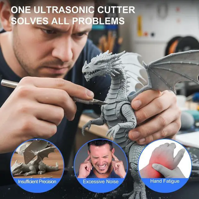 Widely Applicable: The ultrasonic knife is perfect for 3D printing cleanup, resin model trimming, plastic cutting, PCB engraving, EVA foam crafting, leather shaping, wood detailing, jewelry making, prototype modeling, car modding, and industrial sample finishing. Also ideal for metal polishing, glue/rust removal, surface finishing, and fine detailing