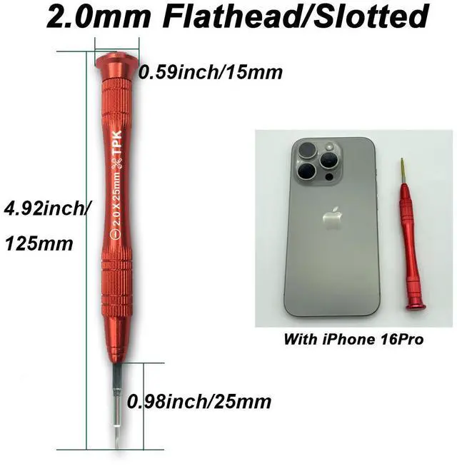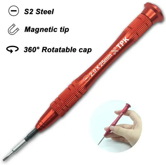 Flathead/Slotted 2.0mm Screwdriver Package Content: 1 x Flathead/Slotted 2.0mm Screwdriver 25mm Blade Length