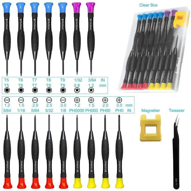 18PCS Mini Precision Screwdriver Set With Case, Magnetic Small Flathead Phillips Pentalobe Torx Star Screwdriver Set Kit and Tweezers for Repairing Computer Eyeglass Phone Watch