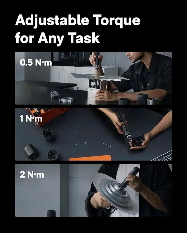Professional 6 Level Torque Settings (0.56 N·m): Six adjustable torque levels allow you to match the right power for every task. Use lower settings (0.5, 1, 2 N·m) for delicate electronics repair and higher levels (3, 4, 6 N·m) for DIY projects furniture assembly and daily home maintenance