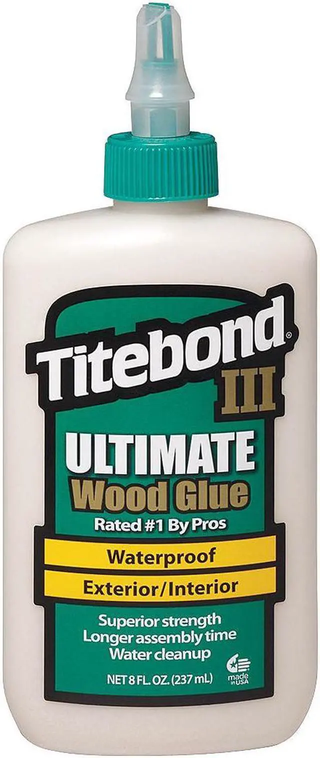 Wood Glue, Ultimate, Glue Purpose Specialized, Materials Bonded Wood, Characteristics Unaffected by Finishes, Waterproof Formula That Cleans Up With Water, Container Type - Adhesives Bottle, Container Size - Adhesives 8.0 oz, Begins to Harden - Adhesives 10 min, Full Cure Time - Adhesives 24 hr, Adhesive Color Tan, Temp. Range Above 47 Degrees F, Application For Interior and Exterior Woods. This item has been restricted from sale in the following state (s): []