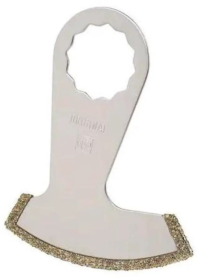 Oscillating Scraper Blade, Scraper Type Rigid, Blade Type Grout Removal, Oscillating Tool Accessory Type Grout Removal Blade, Blade Shape Round, Blade Length 1 3/4 in, Overall Length 6 7/8 in, Maximum Oscillations per Minute 19, 500, Connection Style 12-Point, Direct Fit For Tool Brand Fein Multimaster Series, Compatible with Adapter Fein, Primary Material Application Cement Mortar, Blade Material Diamond Grit, Blade Thickness 0.094 in, Number of Pieces 1
