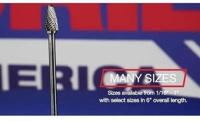 Carbide Burrs, Rotary Files - Double Cut, 6 Inches Overall, Cut Dia 3/8, Cut Length 5/8