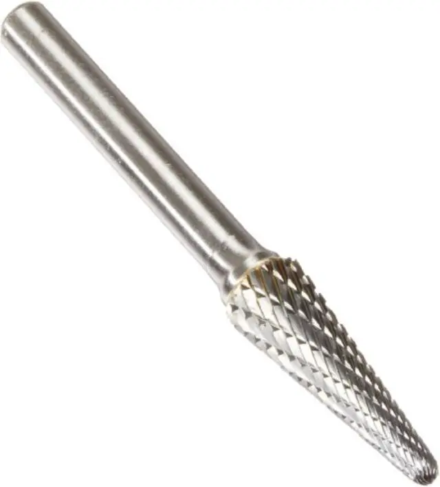 Carbide Burrs, Rotary Files - Double Cut, Cone Radius-End 14 Deg Taper), Cut Dia 3/8, Cut Length 1-1/16