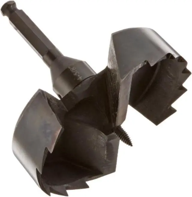 Industrial Quality made of high carbon/alloy steel. Comes with interchangeable screw points. Has multiple outlining spurs whichquickly and cleanly bore large, precise holes without splintering or chipping. Bit includes 1 hex key and 1 screw point