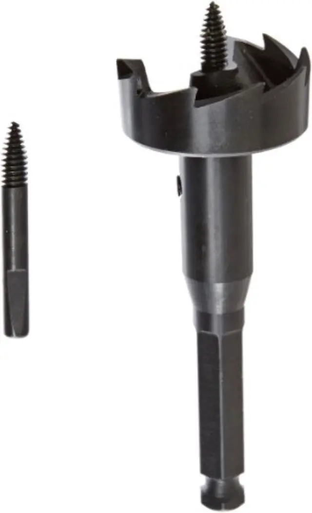 Industrial Quality made of high carbon/alloy steel. Comes with interchangeable screw points. Has multiple outlining spurs whichquickly and cleanly bore large, precise holes without splintering or chipping. Bit includes 1 hex key and 1 screw point