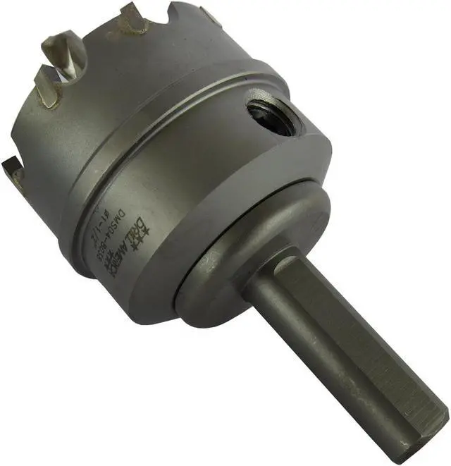 Works like an annular cutter, except no magnetic drill needed! Carbide tipped hole cutters are good for cutting stainless steel, cast iron, iron, sheet metal and copper. It also works well with abrasive materials like high density resin and metal plates. Has auto ejecting slug and can cut over 300 holes in stainless steel plate. 3/16" Depth of Cut for all cutters in this category. Comes with Pilot Drill and Hex Key.