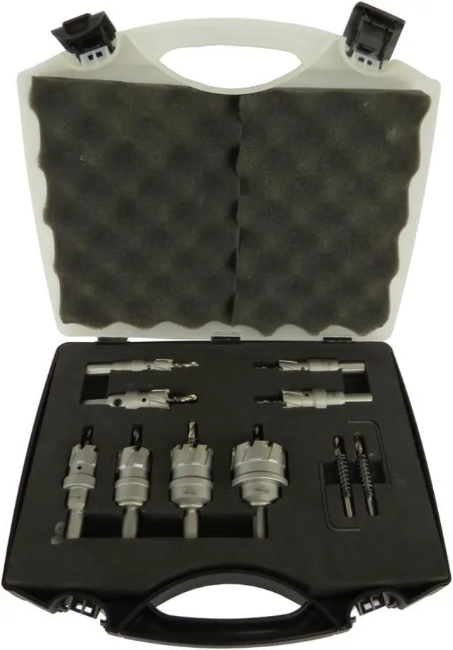 8 Piece Carbide Tipped Hole Cutter Set 1" Depth of Cut CTH5000Works like an annular cutter except no magnetic drill needed! Carbide tipped hole cutters are good for cutting stainless steel cast iron iron sheet metal and copperIt also works well with abrasive materials like high density resin and metal platesHas auto ejecting slug and can cut over 300 holes in stainless steel plate1" Depth of Cut for all cutters in this categoryComes with Pilot Drill and Hex Key.