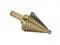 California Proposition 65: This product contains a chemical known to the State of California to cause birth defects or other reproductive harm. Step drills have single radial concave flutes to create a perfectly round hole in metal, plastic wood and other thin materials without center punching. Constructed of industrial grade high-speed molybdenum steel, heat-treated and temperature for long life. Self-starting tip. No center punching needed. Automatically deburrs top side of hole. Ideal for steel, copper, aluminum and other thin materials. They are Black and gold surface treated.
