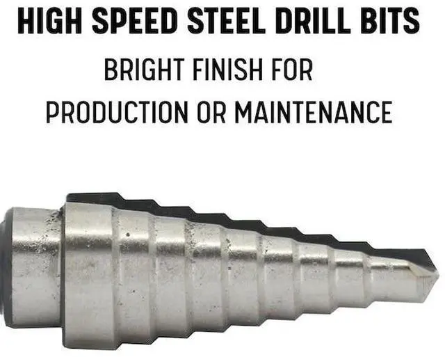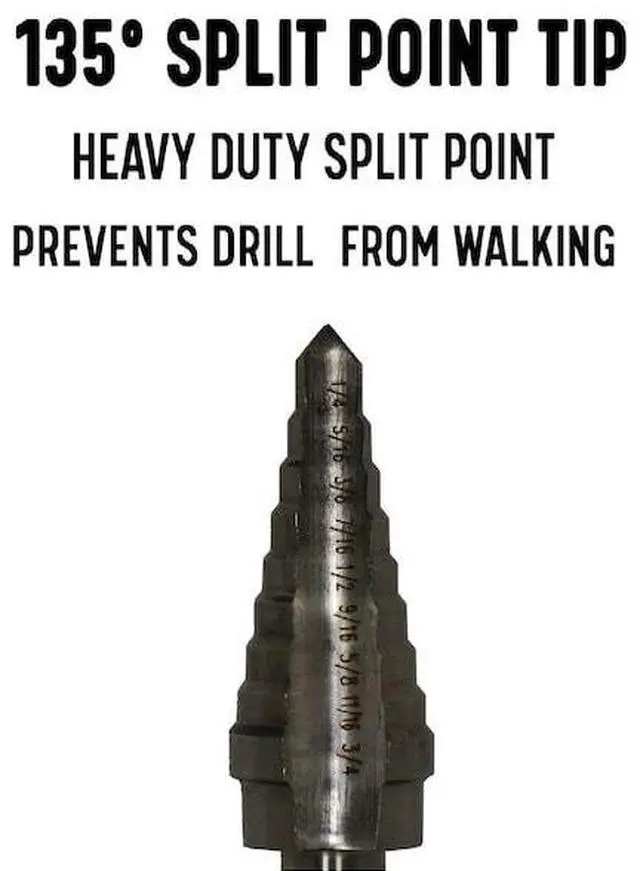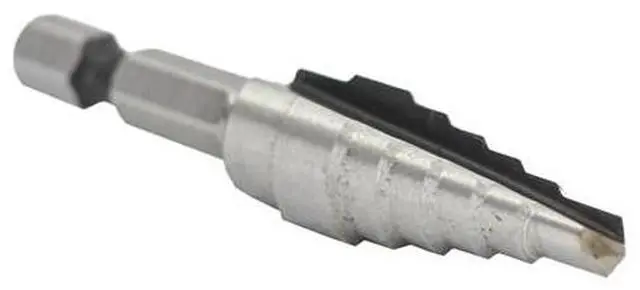 California Proposition 65: This product contains a chemical known to the State of California to cause birth defects or other reproductive harm. Step drills have single radial concave flutes to create a perfectly round hole in metal, plastic wood and other thin materials without center punching. Constructed of industrial grade high-speed molybdenum steel, heat-treated and temperature for long life. Self-starting tip. No center punching needed. Automatically deburrs top side of hole. Ideal for steel, copper, aluminum and other thin materials. They have a bright finish with a 1/4" quick change hex shank.