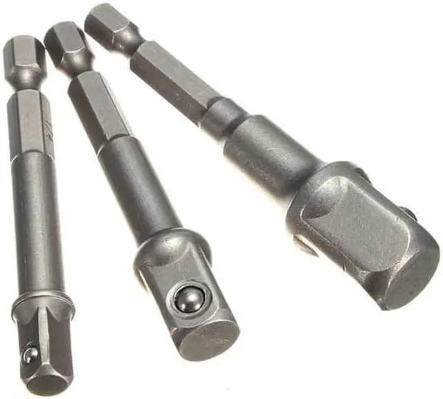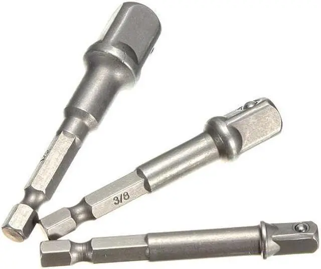 3pc Socket Adaptor Extension Set 1/4 3/8 1/2 Inch Cordless Hex Drill Bit