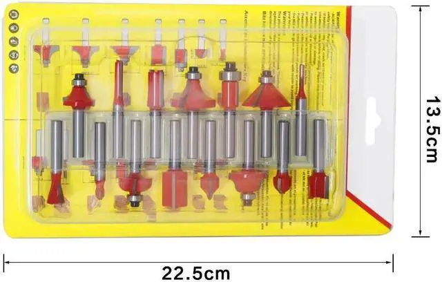 • 15PCS Combo Wood Milling Cutters Tungsten Carbide Router Bits Woodworking Trimming Engraving CarvingTool Set