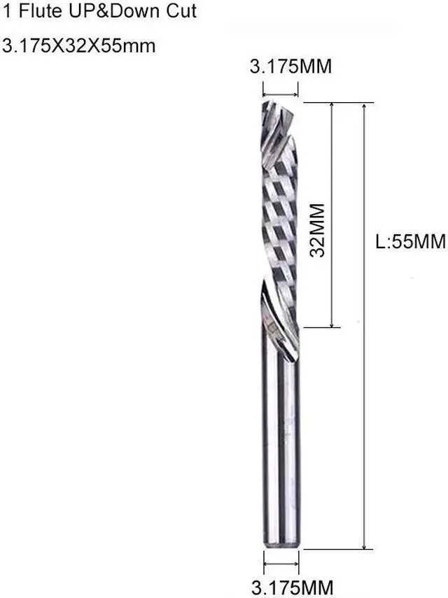 • 5 pieces 3.175X32 One Flute UP DOWN Cut Spiral Carbide Mill Tool Cutters for Compression Wood End Mill Cutter Bits