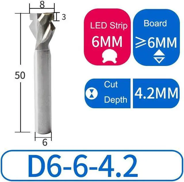 1PCS 6x6D Down 4.2 Neon LED Lights Slotting Milling Cutter Tungsten Carbide Acrylic Advertising Words Light Strip Molding End Mill