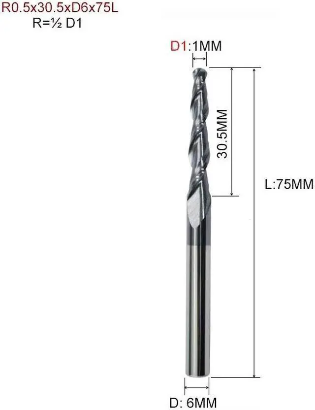 R0.5x30.5xD6x75L HRC55 Tapered Ball Nose End Mill Tungsten Solid Carbide Coated Tapered Cone Cnc Milling Cutter