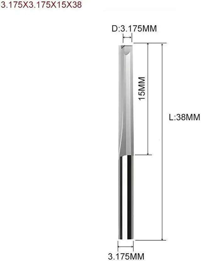 • 10pcs Two Flutes Straight Slot Bit Wood Cutter CNC Solid Carbide Two Double Flute Bits CNC Router Bits 3.175X3.175X15X38