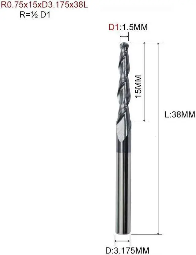 Material: Tungsten steel Safety instructions: 1. The bladed product is not use for people under 18 years. 2. The item is only use for industrial cutting/engraving, not hazardous article. Package include: 1PCS Ball Nose End Mill