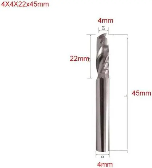 • 10PCS Single Flute UP Spiral Cutter CNC End Mill Carbide Router Bit for Acrylic PVC MDF 4x22x45mm