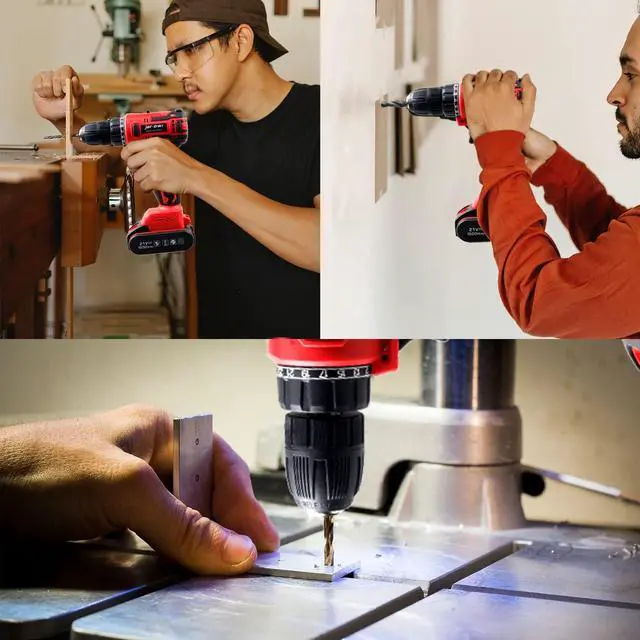 Copper Motor, 3/8Metal Chuck & Forward/Reserve ControlFeatures a Copper Motor, the drill can provide stable operations and is much lighter, cooler than aluminum motor drill drivers, The power drill tool kit is pretty easy and straightforward to use. The adjustable metal chuck can be inserted into a drill or screwdriver with a diameter of up to 3/8 " (10mm) and has excellent accessory compatibility. The forward / backward switch allows you to tighten or replace / remove the drill as needed.
