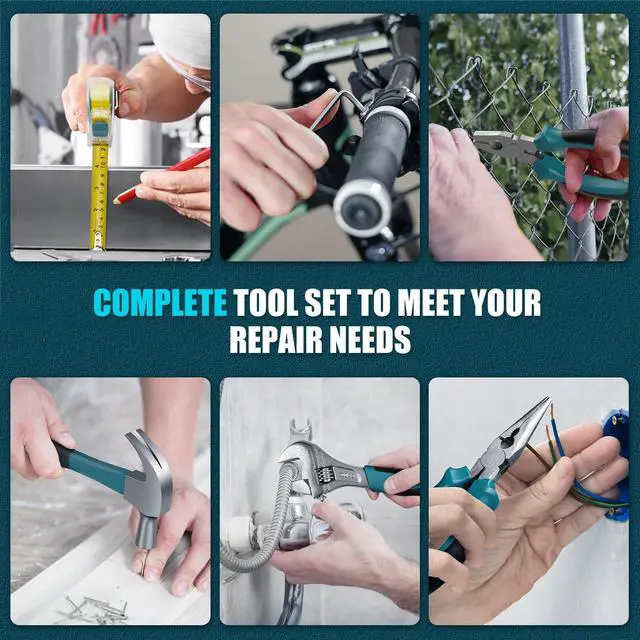 It contains all the basic but necessary tools you will need around your home to assemble furniture, install back yard and patio essentials, hang picture frame, fix simple plumbing issues, repair your bicycle, and a lot more.