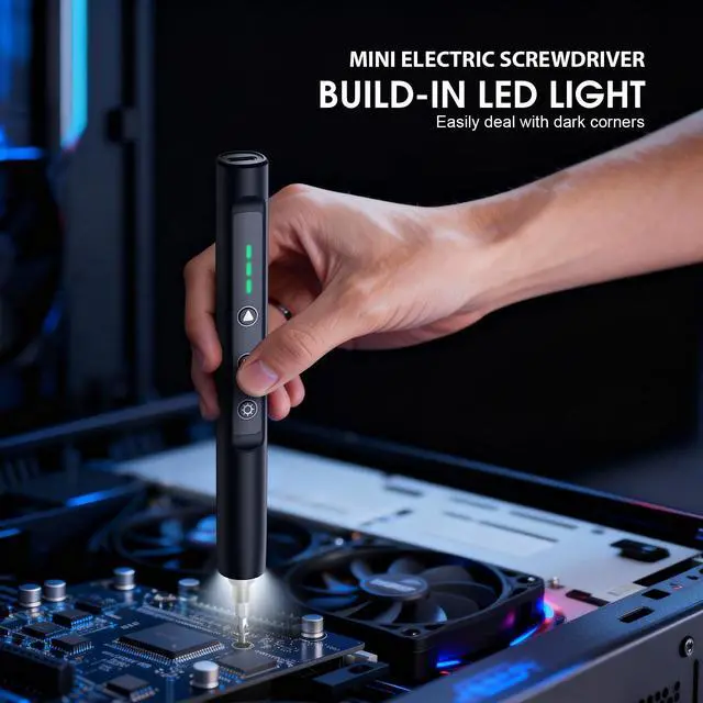 This comprehensive 56-in-1 mini electric screwdriver set is the ultimate solution for precision repair and assembly work. Whether you're working on electronics, PC builds, RC vehicles, or delicate gadgets, this cordless power screwdriver delivers the versatility and control you need. The set includes 52 high-quality S2 precision bits that cover virtually every screw type you'll encounter, from Phillips and flathead to Torx, hex, and specialized electronics bits. The compact, ergonomic design features a carbon fiber textured handle that provides a comfortable grip during extended use. LED indicators keep you informed of battery status and operation mode, while intuitive controls allow you to easily adjust torque settings and switch between forward and reverse rotation. The rechargeable cordless design offers freedom of movement without sacrificing power, making it perfect for both professional technicians and DIY enthusiasts. Everything comes neatly organized in an elegant presentation case with custom foam inserts, ensuring your tools stay protected and accessible. The included USB charging cable means you can power up anywhere, while the additional pry tools help with opening cases and separating components safely. This mini power screwdriver repair tool kit transforms complex repair tasks into manageable projects, giving you professional results every time.