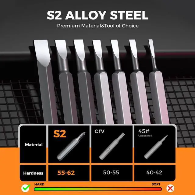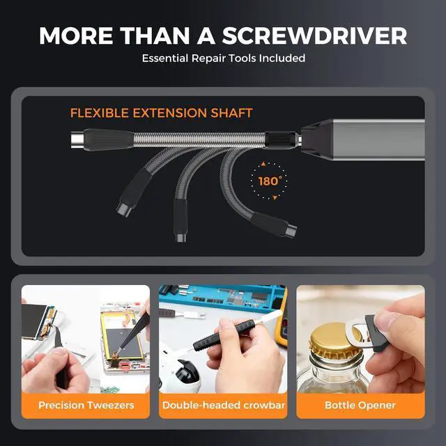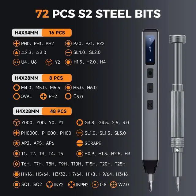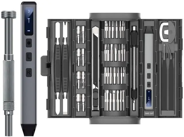 | Included Components | 1 × Precision Screwdriver; 72 × precision Bits; 1 × USB Cable; 1 × Magnetic Worktable Pad; 1 × Magnetizer& demagnetizer device; 2×Thick triangle; 2xThin triangle; 1 × Sucker; 1 × Card picker; 1 × Metal crowbar; 1 × Crowbar; 1 × 15cm nylon long crowbar; 1 × Stainless steel tweezers; 1 × User Manual; 1 × Storage Cases. |