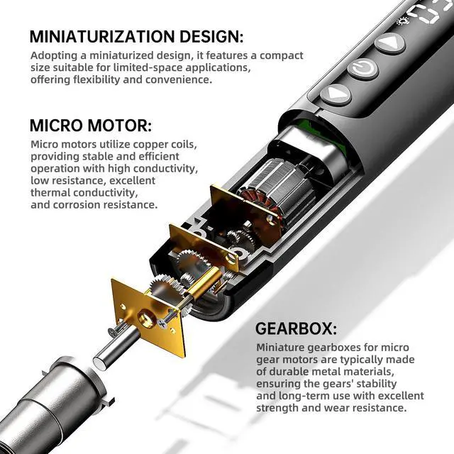 Powerful Electric Performance & Convenient Working Features The tool is driven by an electric motor with 200 RPM max speed and 3.7V battery power, providing faster operation with consistent torque delivery. It is equipped with an LED light for illuminating work areas in dark spaces, and comes with a magnetic handle with strong magnets for secure bit holding and screw pickup.