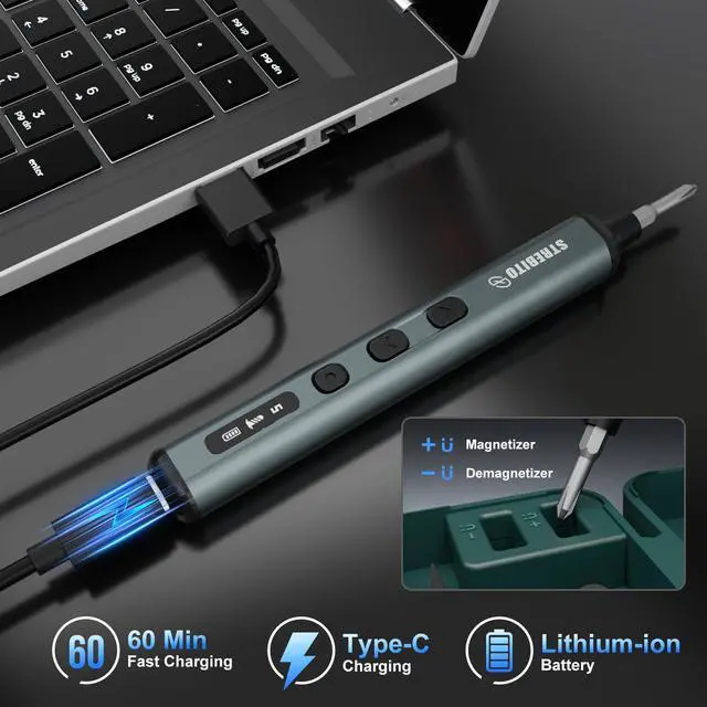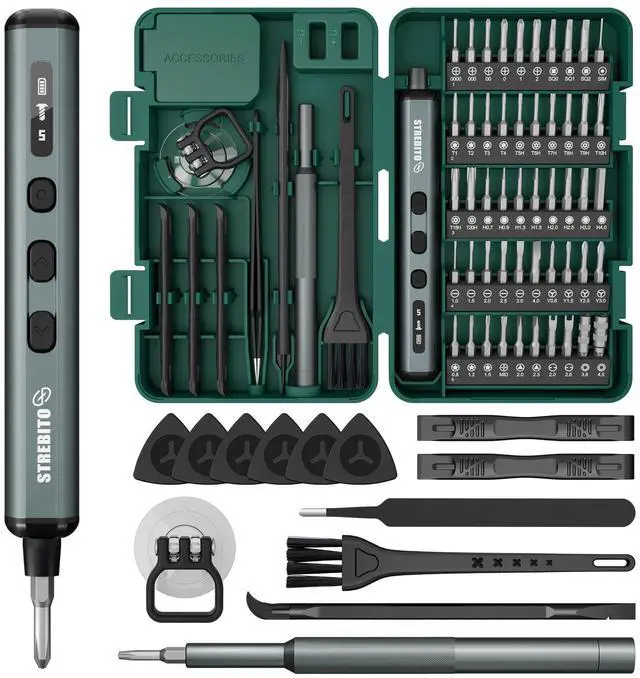 • 5-Level Torque ControlThis STREBITO mini electric screwdriver features 5 adjustable torque levels up to 0.5 Nm and supports up to 7 Nm manual use, making it perfect for precision repair and assembly of PCs, laptops, computers, phones, MacBooks, RC cars, drones, keyboards, PS4/PS5, and a wide range of small electronic devices, combining versatility and control in one compact cordless tool