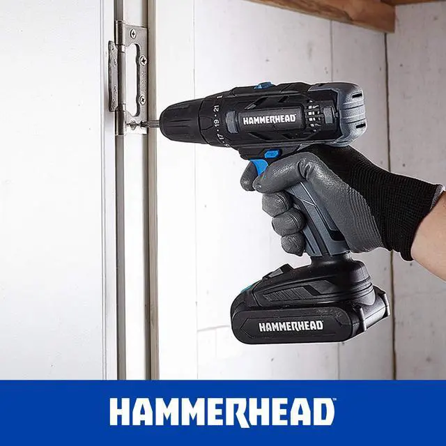 The Hammerhead 20V 2-Speed Cordless Drill Driver features a high/low speed switch, delivering 0-400/0-1,500 RPM speeds, ideal for both high working speed and high torque applications. Thanks to 3/8" keyless 1-sleeve chuck, users can easily switch different bits with one hand. Built-in LED also helps illuminate working area and provide users great visibility even in dark working environment.