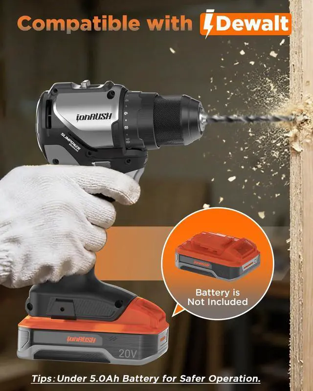 Tool Only: Our electric drill driver is compatible with Dewalt 20V battery packs (battery and charger is not included). If you have related products for Dewalt, you could directly use it to power your power drill rather than extra order.
