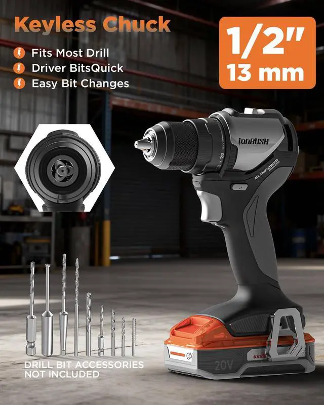 Universal Compatibility: The power drill has equipped with 1/2 inch keyless chuck, it enables quick, secure bit changes, you could perfect for switching between drill bits and screwdriver bits. It fits most standard drill bits and provide assistance for your different work.